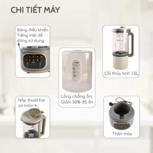 Máy làm sữa hạt ENGLER EL25 chống ồn, dung tích 1,5 lít, 10 chức năng, bảng điều khiển tiếng Việt