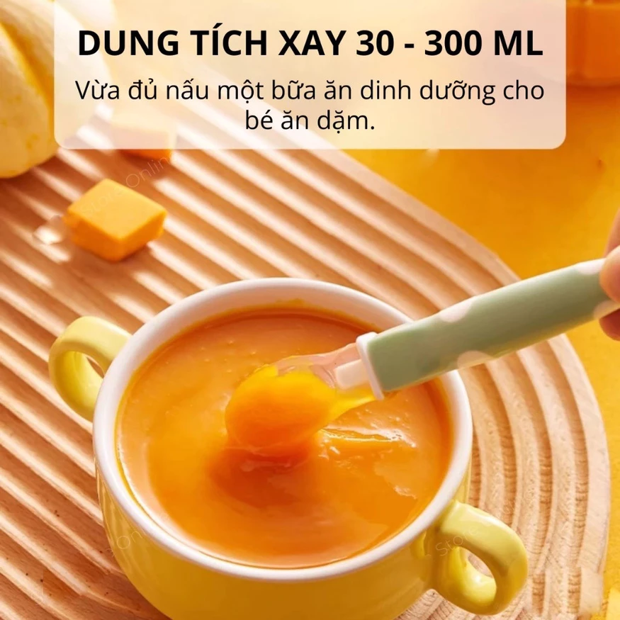 – Xay khoảng 50-70g thực phẩm, có thêm nước khi xay rau củ.