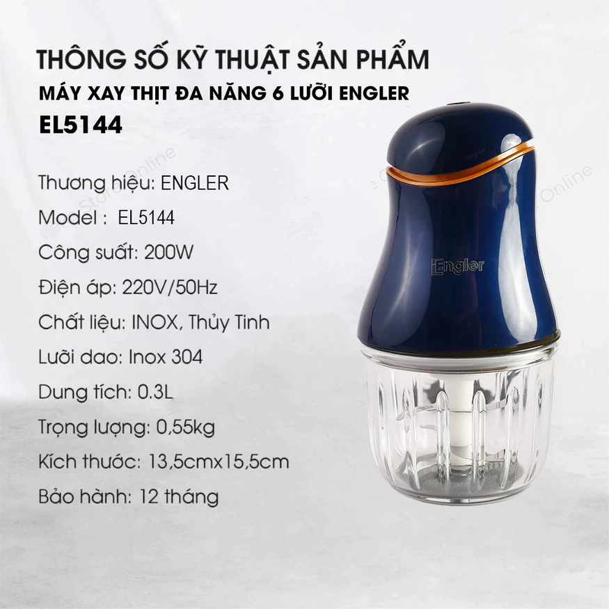 Máy xay thịt đa năng ENGLER EL5144 cối thủy tinh dung tích 300m xay đồ ăn dặm cho bé, an toàn, tiện dụng