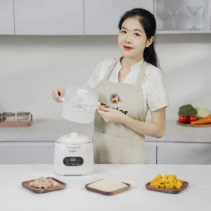 Có chức năng hẹn giờ, tự ngắt khi cạn nước, chống cháy. Phù hợp nấu đồ ăn cho bé, người già hoặc chế biến món dinh dưỡng hằng ngày.